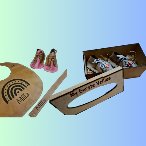 Celebrate a little one’s first steps in style with our “My Eerste Vellies” set – a beautifully curated collection of quality essentials for babies aged newborn to 18 months. From handcrafted leather vellies to practical accessories, this set makes a perfect baby shower gift, keepsake, or first birthday surprise.